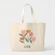 Monogram Floral Illustrated Botanical Bridesmaid Large Tote Bag