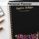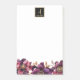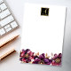 3 blooming flowers in deep red, purple and golden details and leaves are grouped in a soft bow on the lover part on each sheet. A black printed square with a golden frame, your monogram letter and full name customisable for you, are placed all the way on the top.