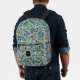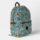 Monogram Flower Pattern orange Swirl Berry on Teal Printed Backpack