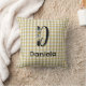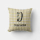 This beautifully designed throw pillow showcases a monogrammed letter "d" and is adorned with a lovely watercolor flower motif. The pillow is complemented by a charming retro yellow-grey gingham pattern, making it a delightful addition to any home decor. Perfect christmas gift.