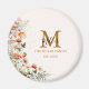 Introducing our Monogram Forest Mushrooms Flowers Floral botanical magnet. Featuring watercolor illustration of mushroom, strawberry, flowers on near white background. And editable text that can be personalised to add unique touch. Suitable as housewarming or wedding gifts.