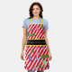 Graphic pattern of candy in red,yellow and black. Funny quotes on vibrant colours.