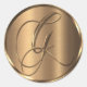 Monogram G NONMETALLIC Bronze classic round sticker. Seal envelopes or wedding favour gifts with these printed faux BRONZE monograms. These are not embossed monograms or beveled monograms and they are printed with non metallic inks on a flat sheet of stickers available in two sizes. In addition to being pretty wedding stationery supplies, these elegant wedding invitation envelope seals also make great monogrammed custom Christmas card seals, personalised holiday greeting card envelope seal stickers and customised Xmas card monogram seal stickers.