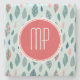 Monogram Girly Whimsical Leaves Pattern Stone Coaster