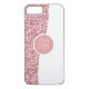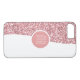 Monogram smartphone case with simulated pink sparkling glitter digitally printed on the cover along with colour coordinated monogram emblem in pink and white you can personalise and make your own. Designed for ladies or girls who like a little glitz and glam on their cellphone cover.