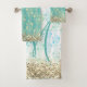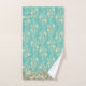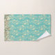 On these stylish bath towels are cascading rows of golden flowers and stems on a teal backdrop and teal flowers on a white backdrop on the big towel where you can customise with a letter and all towels have a glittery border for extra glam. Stylish floral enchantment