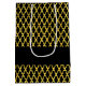 Monogram gold and black quatrefoil pattern medium gift bag