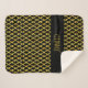 Monogram gold and black quatrefoil pattern sherpa blanket
