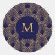 Monogram Gold and Blue Art Deco Pattern Classic Round Sticker