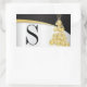 Monogram Gold & Black Merry Christmas Rectangular Sticker