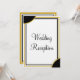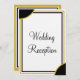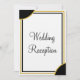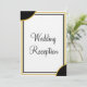 Wedding Reception is written in elegant black script against crisp white background. Two-toned gold and black colours geometric border and faux flap scalloped corners. Large Monogram on back in gold colour script. Personalise reception date and details. Designs by TamiraZDesigns.