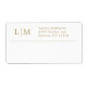 Modern and minimalist shipping labels featuring your two initial monogram on the left and your business name and return address in a gold serif font, over a white background. A thin line divides the space below where you can handwrite your customer's address. A basic and plain design that still comes across as stylish. These shipping labels are a great way to add an elegant and professional touch to your packages.