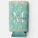 Monogram Gold Floral on Green Teal Seltzer Can Cooler