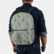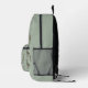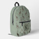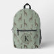 On this stylish backpack are gold glittery giraffes in a repeat pattern on a dusky sage green backdrop for extra pop. Chic modern vibes. Can be personalised with a letter in the middle in a green sphere on the front pocket