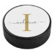 Monogram Gold Grey Script Name Modern Typography Hockey Puck
