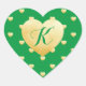 Monogram Gold Hearts Faux Foil Pattern on Green Heart Sticker