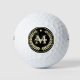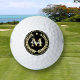 This attractive golf ball features a gold laurel leaf wreath with your monogram at the centre. Across the monogram is your name in white script. At the top of the design is a small gold star. Everything is placed on a dramatic black background.