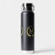 This classy beverage bottle features a gold laurel leaf wreath with your monogram at the centre. Below the monogram is your name (first or last...your choice!) in matching gold. At the top of the design is a small gold star. The image is repeated three times around the bottle.