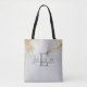 Bring your fabulous gifts for birthdays, weddings, bride's maids, back to school supplies, staff gifts, company gifts, or other special occasions in this tote bag with a bold design that is easy to personalise with a person's initials, school initials or company initials. Monogram tote bag in gold and grey marble.