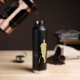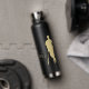 This beverage bottle features a gold silhouette baseball player who is leaning on his bat. Your monogram in matching gold is framed by thin gold lines. This design looks best on the black colour of bottle.