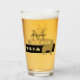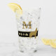 This tumbler beer glass is distinctive and memorable! It features a gold silhouette howling wolf on a dramatic black background. Beside the wolf are matching gold card suit symbols on the same black rectangle. Your monogram is in matching gold and your name is written in black script over it. Both sides of the glass have the same text and image. Perfect for his poker nights! Be sure to see the matching glasses of various wildlife in our store.