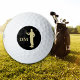 This distinctive golf ball features a gold silhouette old time golfer standing with his club over his shoulder. Your monogram is in matching gold beside it. The text and image are placed on a dramatic black background. Be sure to see the matching golf accessory products in our store. *Thanks to ChiliPapers for silhouette image used in this design.