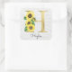 Monogram Gold Sunflower Girly Floral Initial H Square Sticker