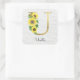 Monogram Gold Sunflower Girly Floral Initial U Square Sticker