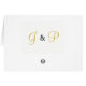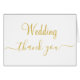 Gold colour Wedding Thank You is written in elegant script againt white background. Personalise backside with Monogrammed Bride and Groom Initials. Type in a special wedding thank you message for each card and add them separately to the shopping cart, or leave blank to hand-write personal touch message. Upload wedding photo on inside flap by clicking Personallze, click on Inside Layer on left-hand side. Designs by TamiraZDesigns.