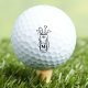This elegant monogram golf ball features a simple black and white outline of a golf bag filled with clubs on one side, accented with a classic serif font initial monogram on the bag. The monogram is currently in a dark grey, almost black, but can be customised to your preferred colour.