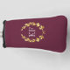 This golf club cover is shown with a gold laurel wreath on a Merlot background with custom monogram initials in White.