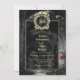 This black and gold gothic wedding invitation, featuring a gothic ruins with red roses scene, can be personalized with your monogram and event information in elegant typography. Designed by Thisisnotme©