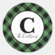 Monogram Green Black Buffalo Plaid Christmas Classic Round Sticker
