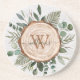 Monogram Green Eucalyptus Leaves Foliage Wood Coaster