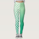 Modern light to dark green gradient features your monogram in white text at the outer bottom of the left leg. The right leg features a chequered pattern with white next to coloured squares that gradually change from light green to dark green. Add your initials, name, or other text in the sidebar. (Put each letter on its own line to make the text vertical.) An eye-catching, asymmetrical piece for your wardrobe.