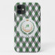 This monogrammed green, grey, and white argyle plaid pattern iPhone 5 case has a green and gold crown with laurel leaves and an outline of a golf ball on it and it can be customised with your name, initials, monogram, company logo, business name or other text.
