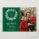 Monogram Green Wreath Merry Christmas Photo