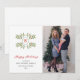 Elegant Happy Holiday Monogram greetings card featuring a hand painted watercolor holiday greenery and citrus . Add your favourite family photo.