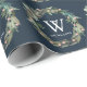 Monogram Greenery Wreath Christmas Holiday Navy Wrapping Paper