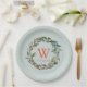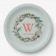 Monogram Greenery Wreath Holiday Green Paper Plate