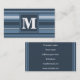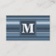 Monogram grey-blue stripes business card