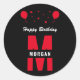 Monogram Happy Birthday Any Age Black White Red Classic Round Sticker