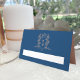 Monogram heart crest dark blue rose gold wedding place card