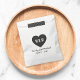 Stylish favour bag featuring your initials against a black heart with your name and wedding date below it.