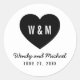 Modern monogram Save the Date Wedding round sticker featuring a heart.
