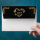 This design features a gold scroll heart on a black background on the inside flap, borders on front with heart monogram on back flap.