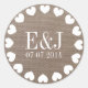 Monogram heart wedding stickers | burlap texture. Custom envelope sealer. Cute idea for wedding invitations, wedding favours and thank you cards. Add a elegant name initial letter of the bride and groom. Monogrammed love sign for rustic country chic wedding.