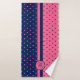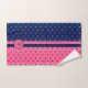 Monogram Hot Pink and Navy Polka Dot Pattern Bath Towel Set