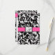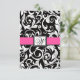 Monogram Hot Pink Black Damask Wedding RSVP Cards