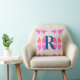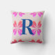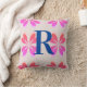Monogram Hot Pink Bright Orange Retro Flower Cushion